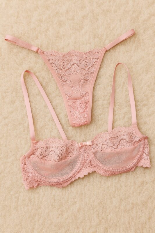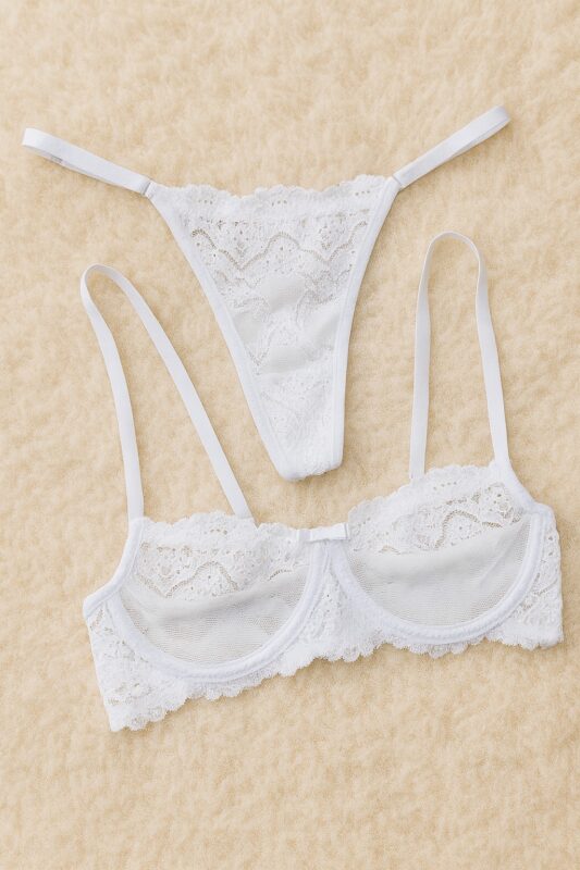 O conjunto Leonor foi pensado para quem ama delicadeza com um toque de ousadia. O sutiã sem bojo valoriza naturalmente o formato dos seios, com tule liso na parte inferior que deixa a pele sutilmente à mostra e renda trabalhada na parte superior, criando um desenho elegante no decote. As alças são finas e ajustáveis, garantindo melhor caimento e conforto no dia a dia.