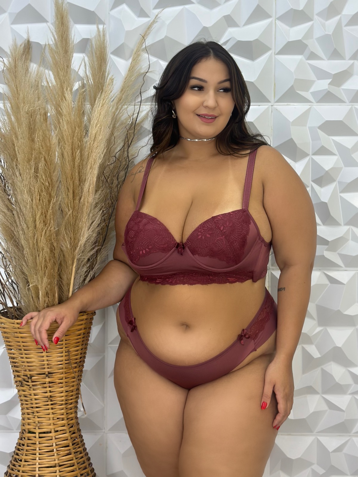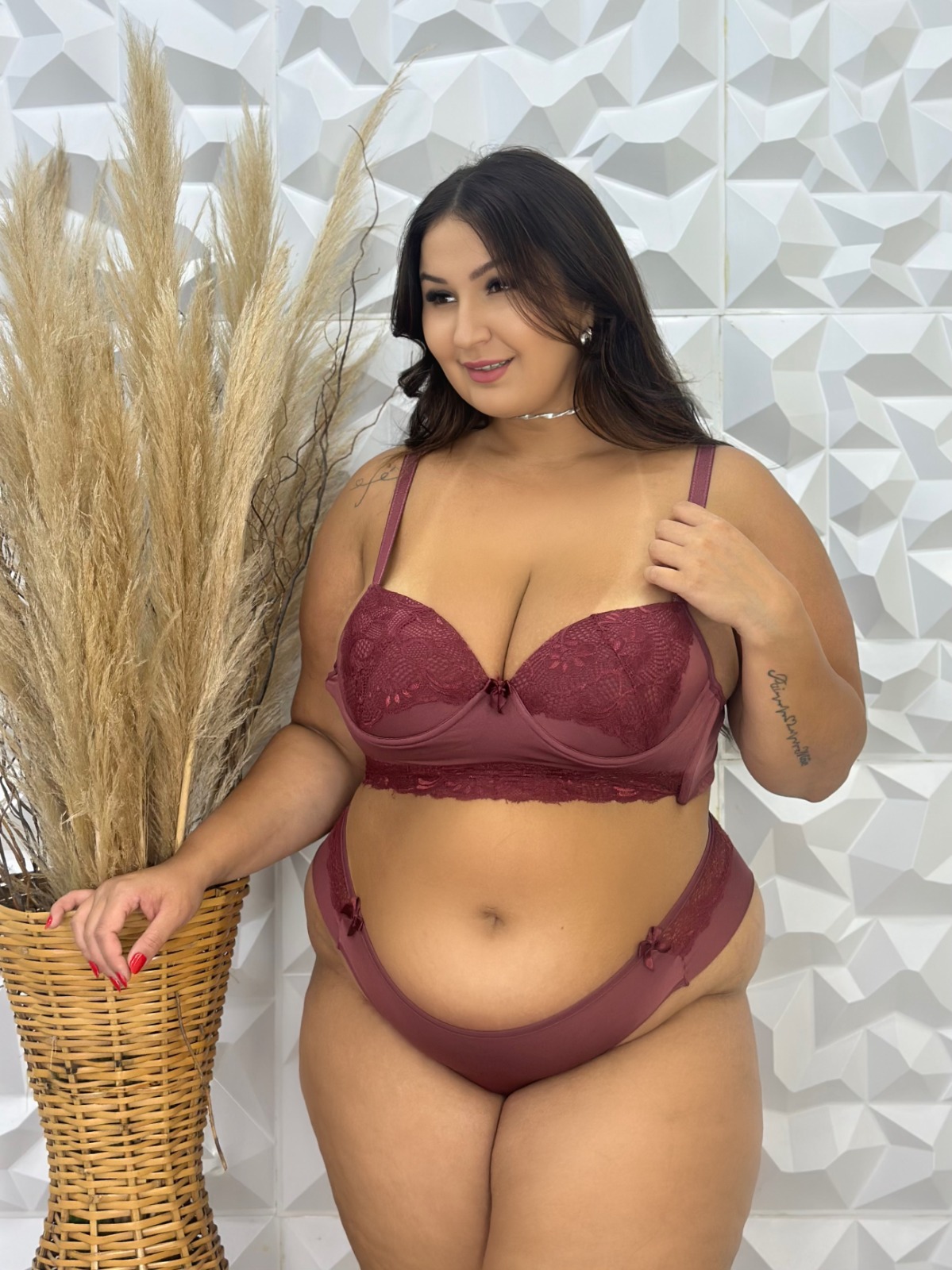 O Conjunto Neia é confeccionado em microfibra romantic (poliéster) e renda. O sutiã é maravilhoso com modelagem atual. Possui detalhes de renda no bojo e também no meio do sutiã, a transparência da renda sempre é um charme a parte. Todos os tamanhos possuem bojo casquinha e aro para sustentação e também paletas laterais que ajudam muito. Finalizando possui um lacinho de cetim e alças 18mm com regulagens.
